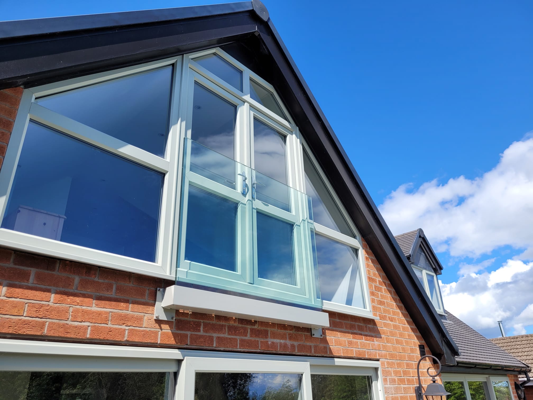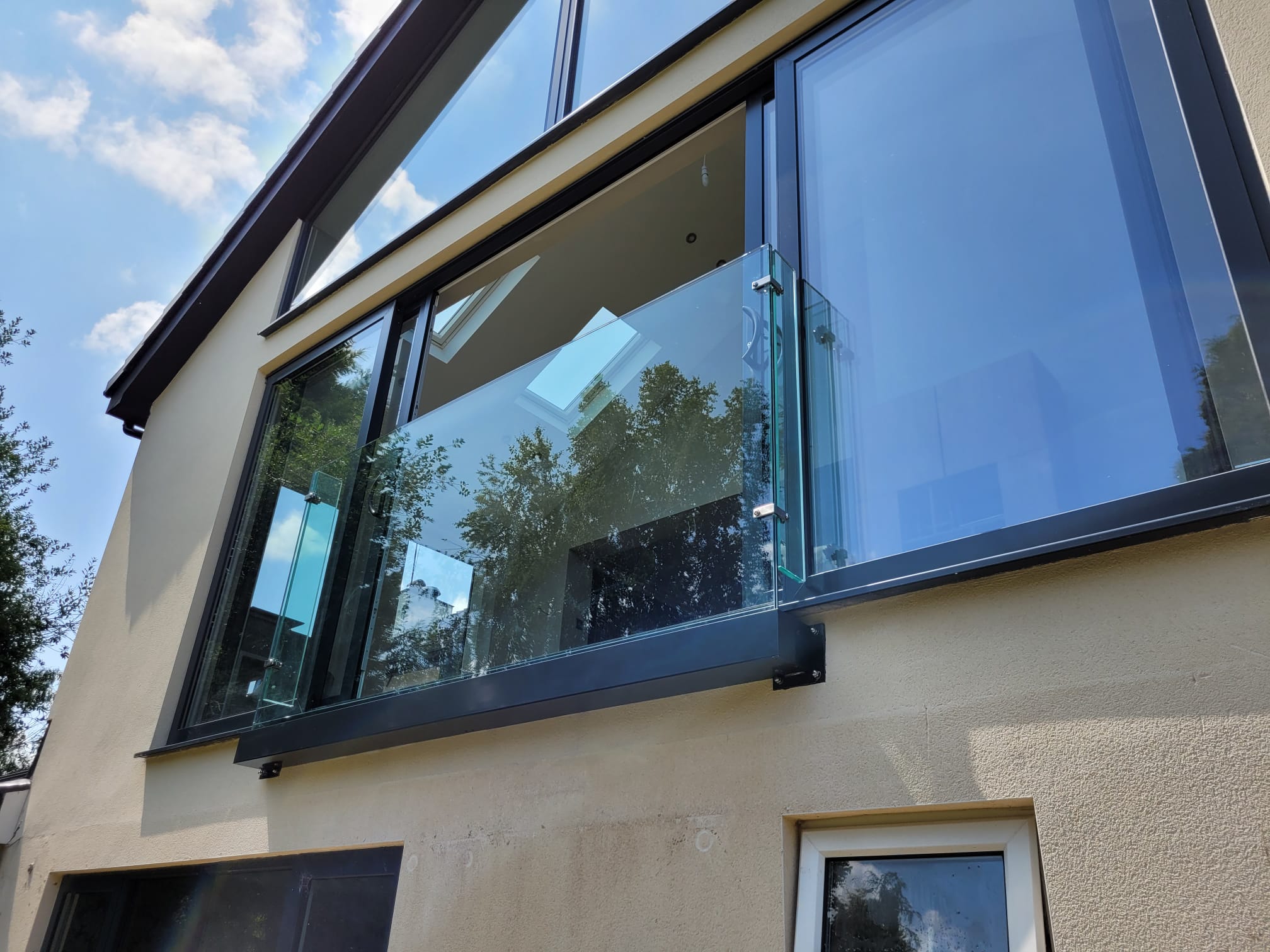 The track-fixed Juliet balcony offers a floating frameless glass effect that keeps views clear and light flowing. The aluminium base channel sits neatly below the sill for a subtle, architectural finish.